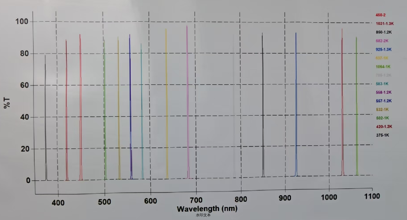 超窄带通滤光片定制,带宽低至0.3nm-5nm,中心波长覆盖紫外到红外波段。