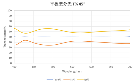 反射/透射比(R/T):50/50,40/60,30/70等 | 分光膜规格:50/50@550nm±10%@400-700nm |