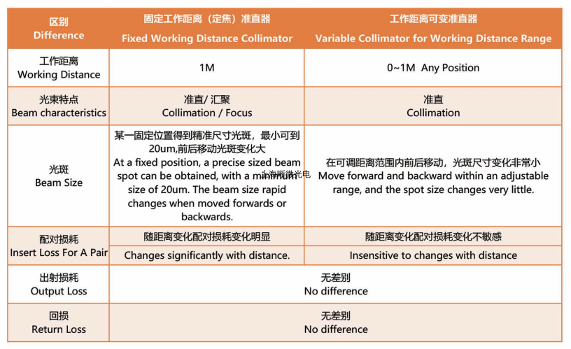 按照工作距离划分可分为固定工作距离(定焦)准直器和工作距离范围可变(长景深)准直器,根据不同工作距离选用球面透镜或者渐变折射率透镜。我们建议准直器安装在光学精密调节架中进行对准和调试,保证耦合空间光束时达到最佳耦合效率。