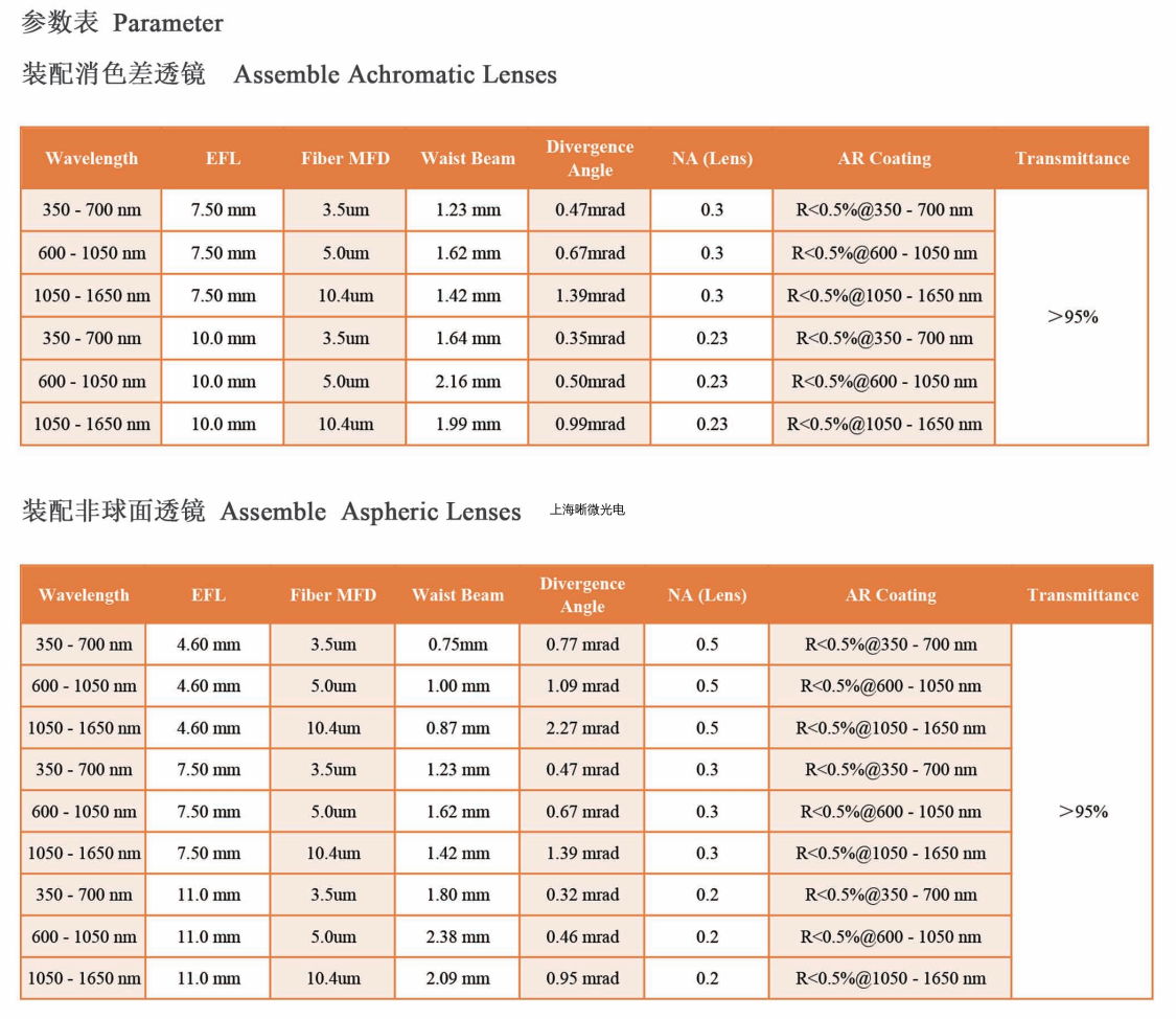 上海晰微光电生产的五维光纤耦合镜结构紧凑,设计巧妙,能够在非常小的空间进行精密五维调节,在接头和光纤保持不动时,内置的透镜具有五个对准自由度:X和Y方向的线性对准、俯仰和偏转角度对准、同时使用俯仰和偏转调节Z轴。其X和Y方向的行程范围为±0.7 mm,Z方向行程范围为>2mm,俯仰偏摆调节范围±4°。该款耦合镜具有很好的结构稳定性和较高的耦合效率,如果更换光源波长,使用时还需对耦合镜进行微调,以获得更高的耦合效率。
